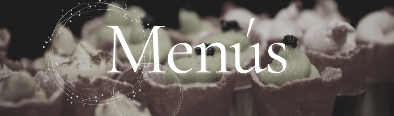 Els menús estan formats per aperitius freds i calents, primer i segon plat (segons el menú que trieu), sorbet, pastís nupcial i celler.